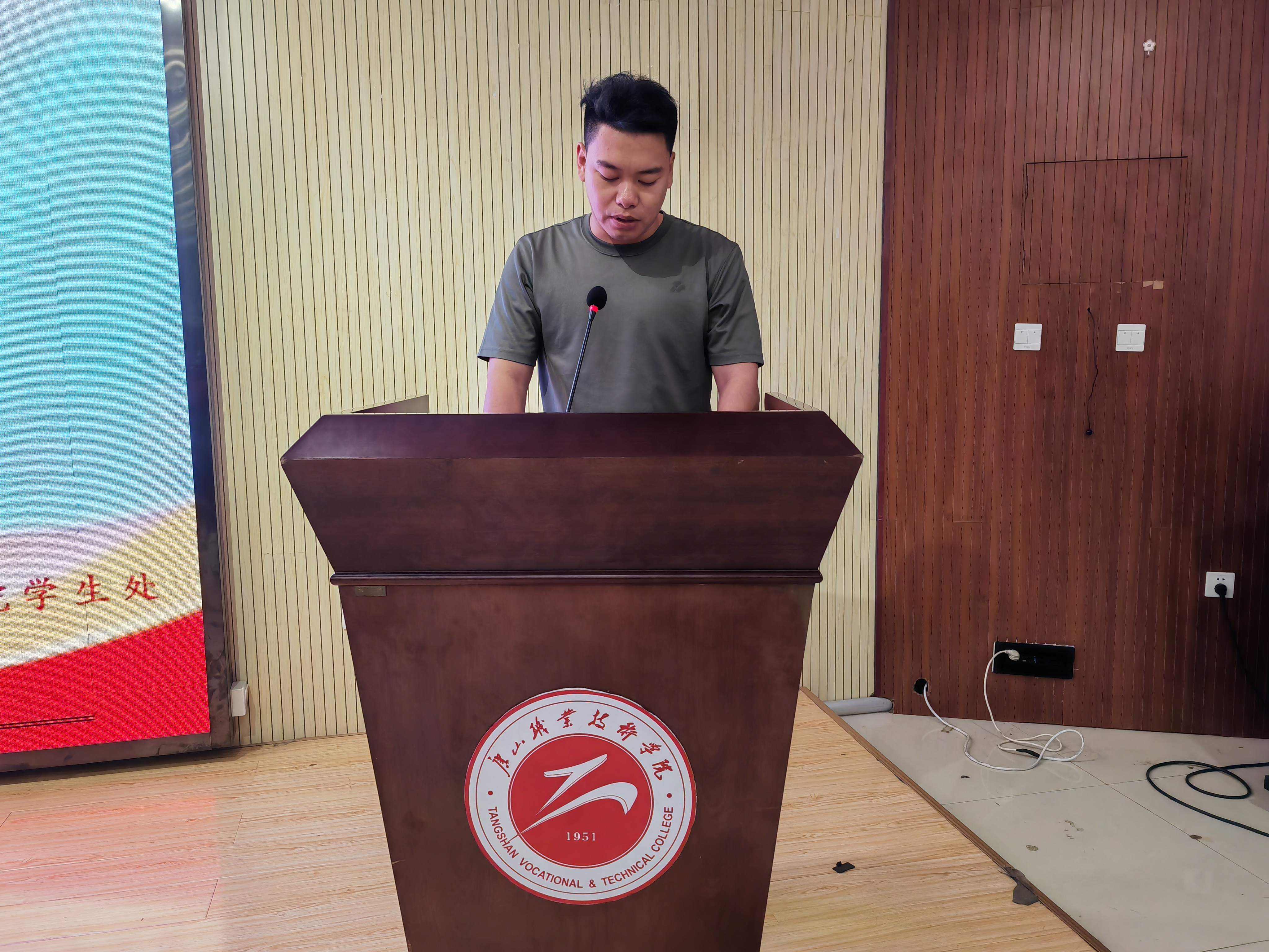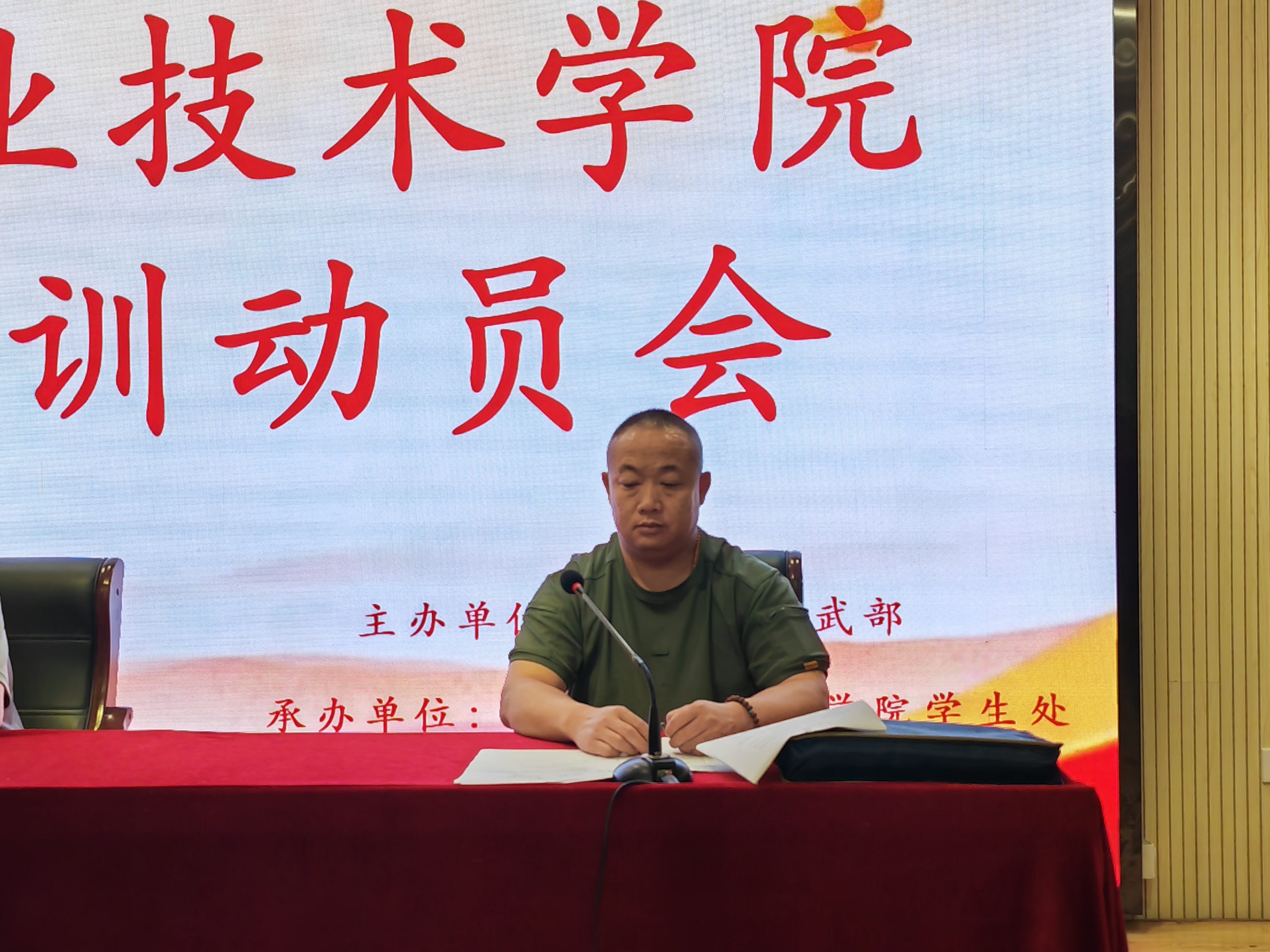 李康同学代表全体参训学生做了做好集训和认证工作的表态发言。学生处左力老师代表学院武装部对丰南武装部对万象城官网军训工作的大力支持表示了感谢,对参训的学生就集训期间的纪律要求和集训期间的安全事项做了具体要求。