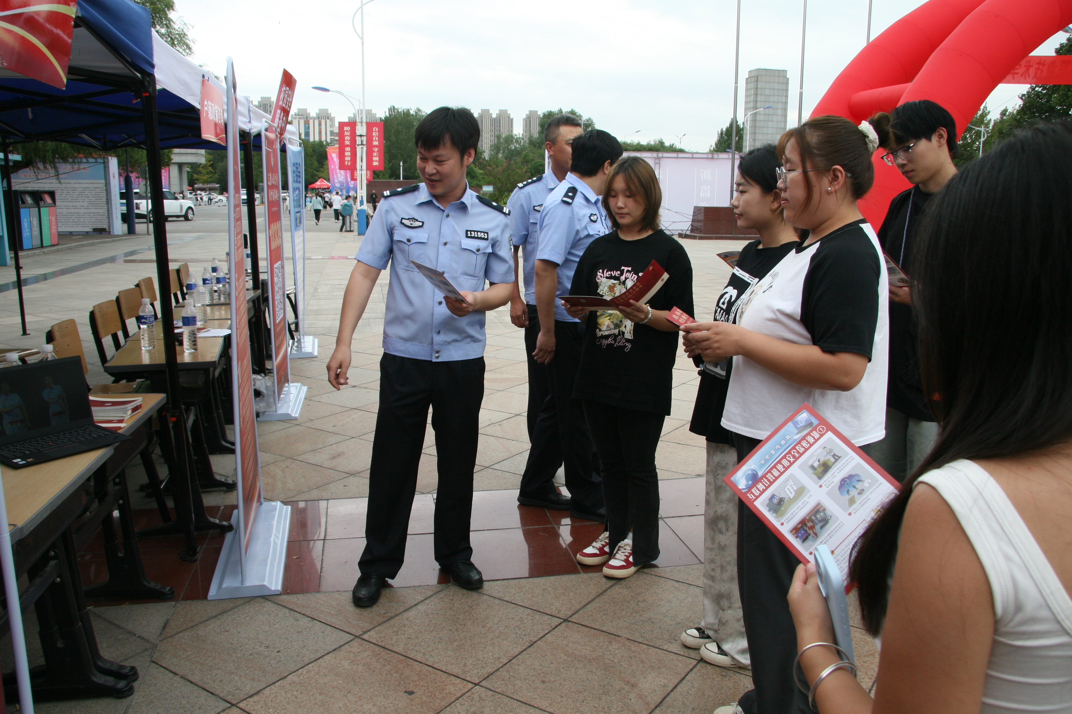 唐山市国家安全局宣传人员在万象城官网迎新现场为同学讲解保密知识和国家安全知识