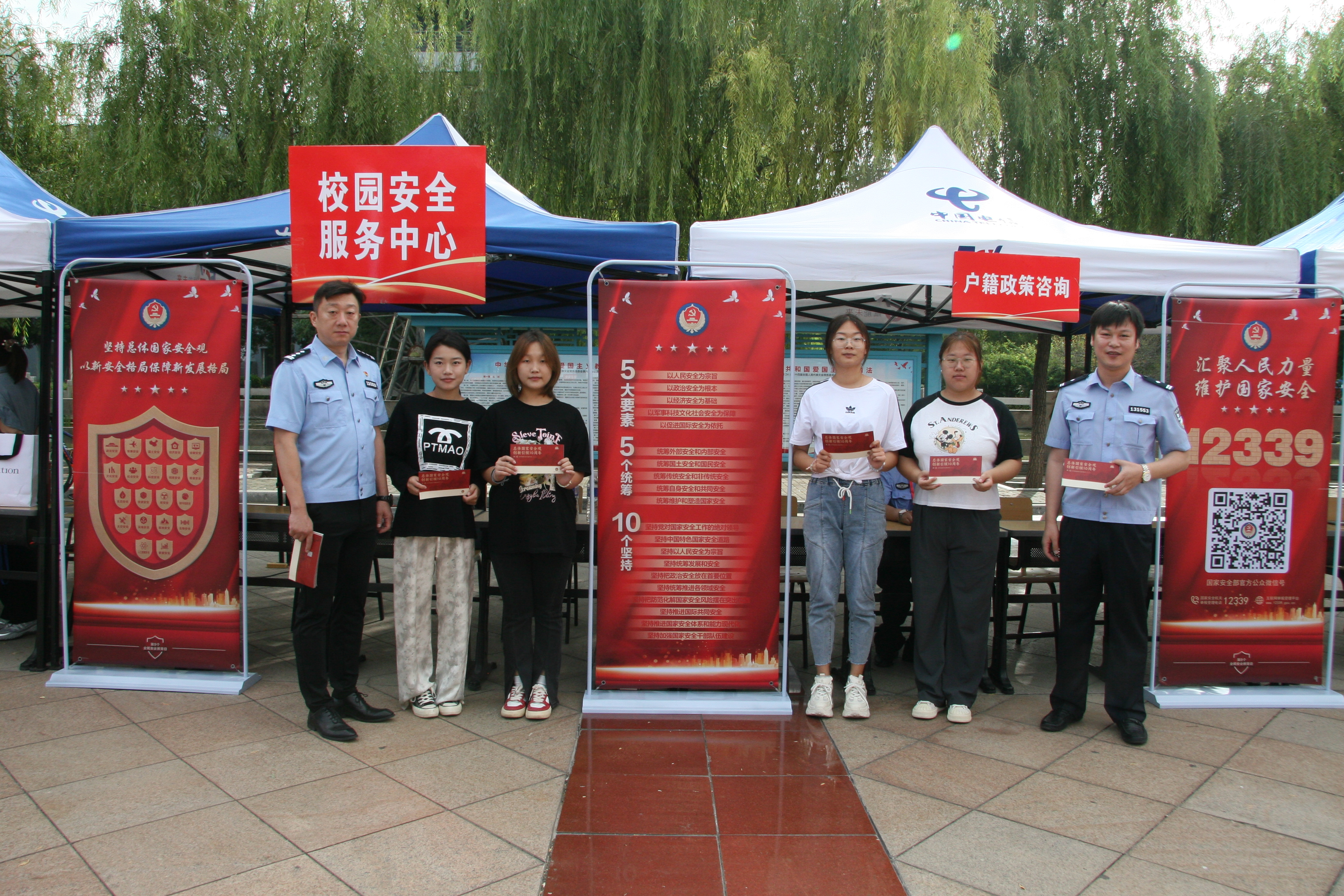 在迎新现场,安全工作处与市国家安全局的宣传警官紧密合作,设立了专门的国家安全宣传区域。这里不仅布置了醒目的宣传展板,还播放着生动的国家安全教育视频,吸引了众多新生和家长的驻足观看。