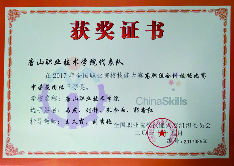 2017年全国会计技能大赛三等奖