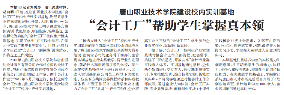 河北日报报道我系校内实训基地建设成果