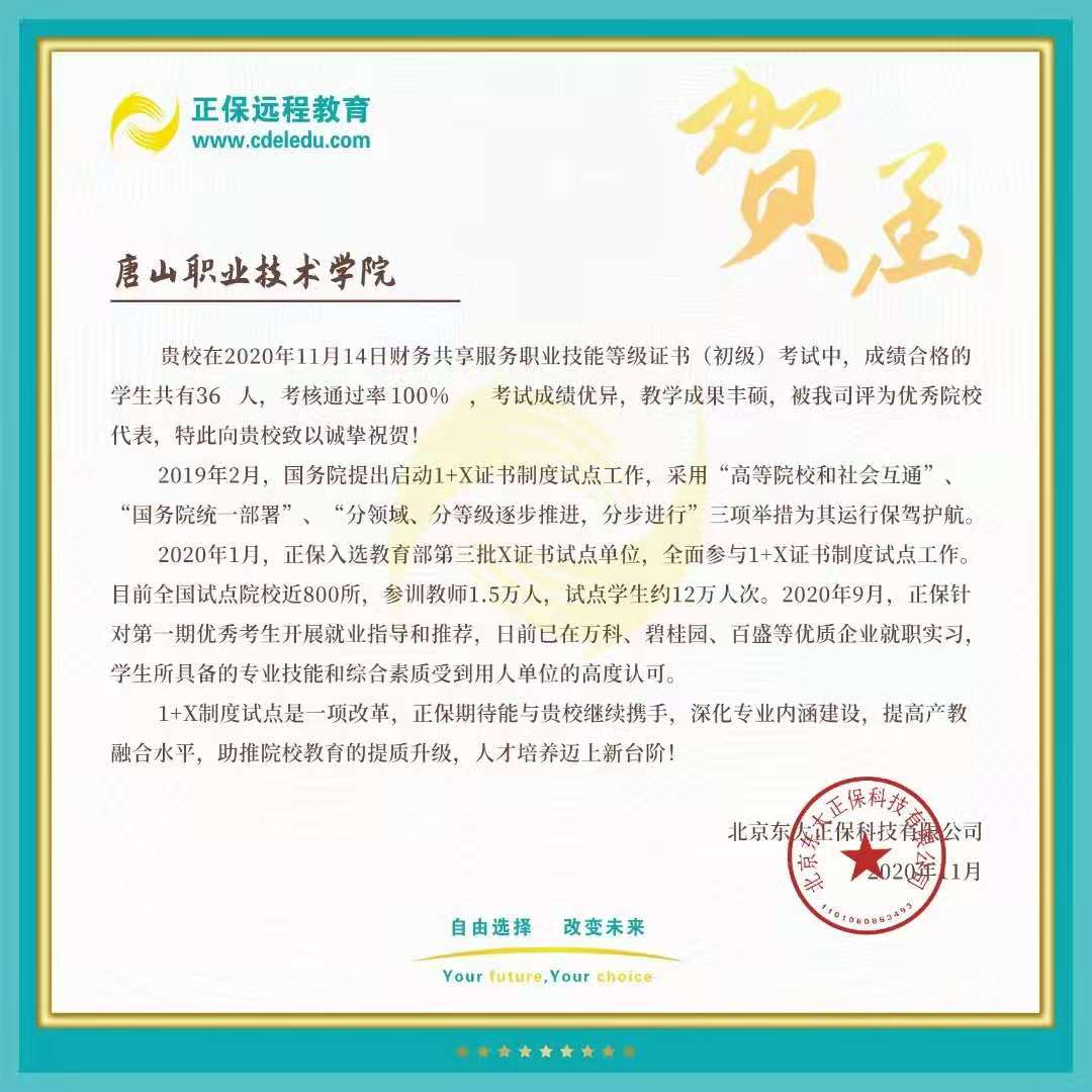 财务共享服务职业技能“1+X”证书考试通过率100%