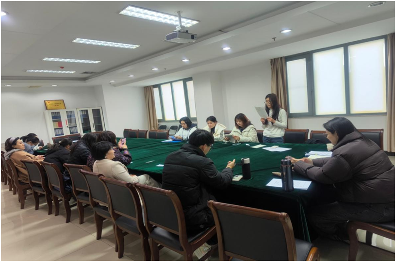 11月26日,101楼八层会议室进行选拔与辅导,参会人员:田洁、薛正茂(speech)、周伦、倪旭冉(interview)、刘嘉明、刘佳(presentation)、段晶晶、吴俊娇、高丽丽、赵姝、杨志红(debate),选出教师赵姝、曹振华的两名学生进行下一步指导,告知学生准备5个speech初稿。