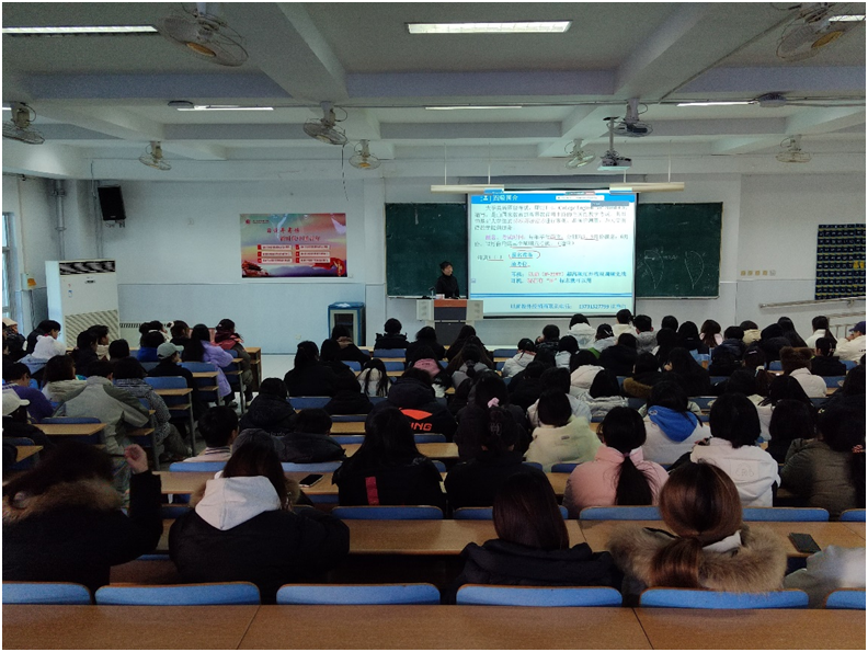 本次讲座特邀英语教师陈靖主讲。讲座伊始,老师深入剖析四级考试大纲,详细讲解各题型分值分布与考点,让同学们对考试有清晰认知。针对听力这一难关,老师分享实用技巧,如巧用关键词、提前预判语境等;阅读部分,则强调不同题型解题策略,如定位原文、分析长难句;写作与翻译板块,通过展示高分范例,传授写作思路与翻译要点。互动环节,大家积极提问,老师耐心答疑解惑,现场气氛热烈。