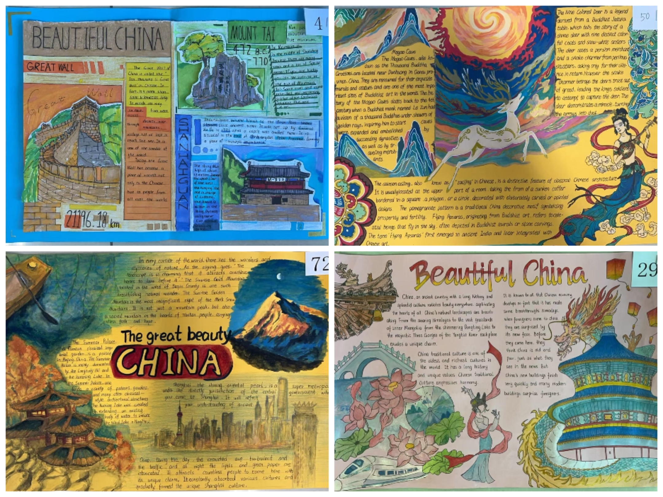 选手们紧扣主题,深挖中国各地自然风光、人文古迹与现代发展成就等素材。学生们凭借丰富想象与扎实英文功底,将多彩的“美丽中国”绘于手抄报之上,文字阐述与艺术设计相得益彰。