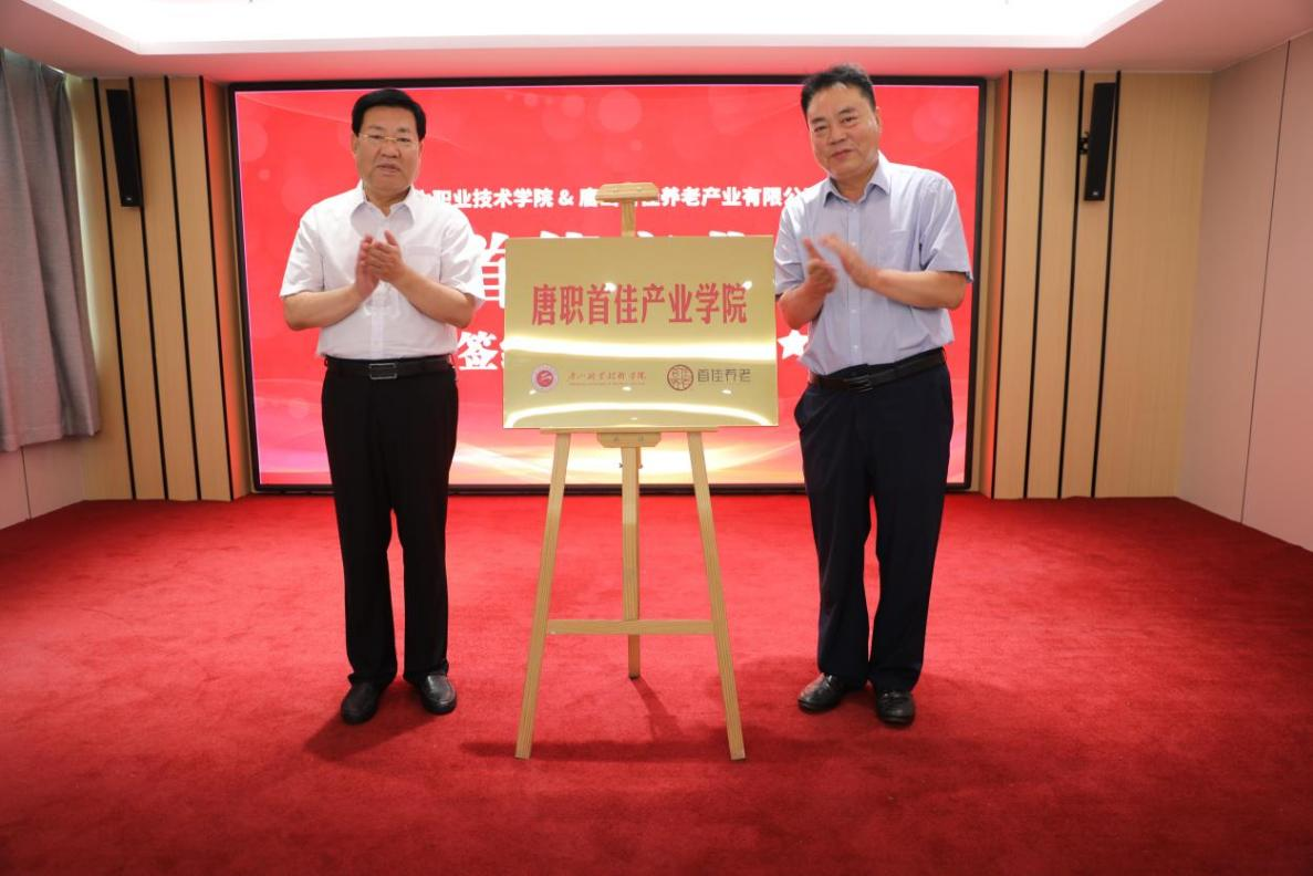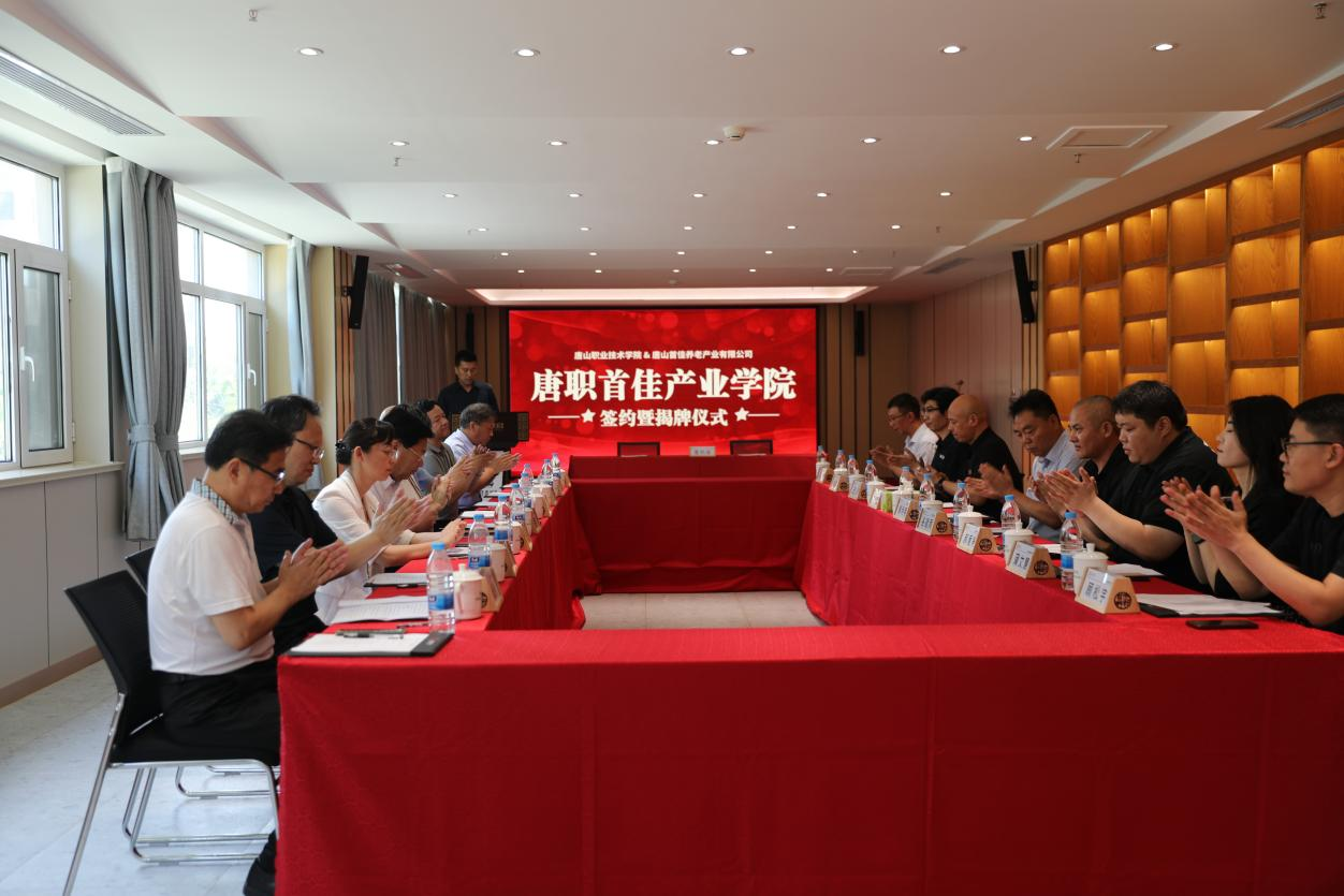 随后,双方领导签署了唐职首佳产业学院共建协议,并为产业学院揭牌。