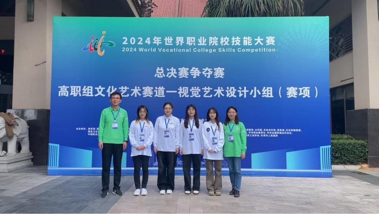 10月27日至31日,2024年世界职业院校技能大赛争夺赛高职组“视觉艺术设计”赛项在云南省云南轻纺职业技术学院举办。来自全国62支参赛队伍,共243名选手参加比赛。万象城官网信息系周磊、于海存老师指导的李亚楠、杨纹嘉、张楠、丁筱雪四名选手组成的团队,经过1小时激烈角逐,以过硬的专业技能和出色的现场表现,最终以全场最高分645分小组第二名的优异成绩荣获银奖。
