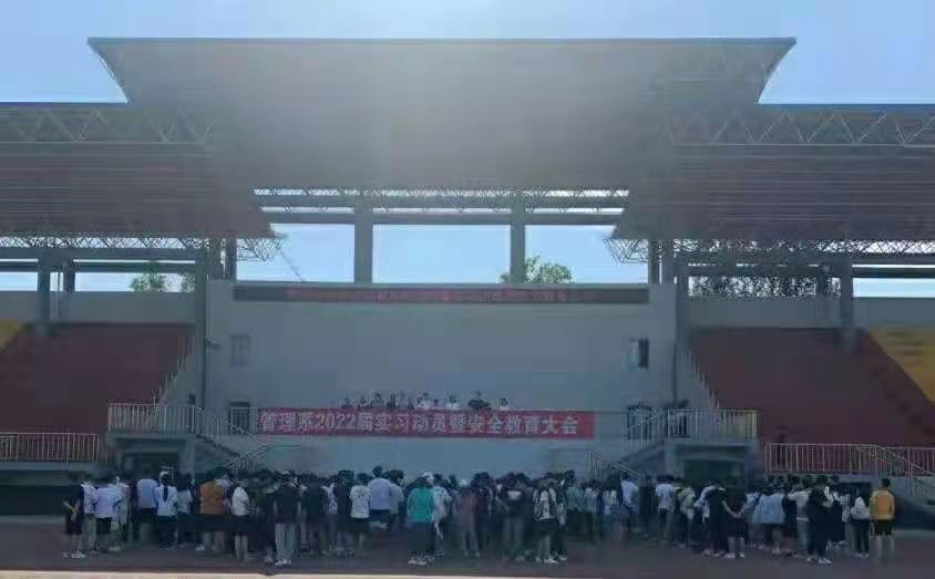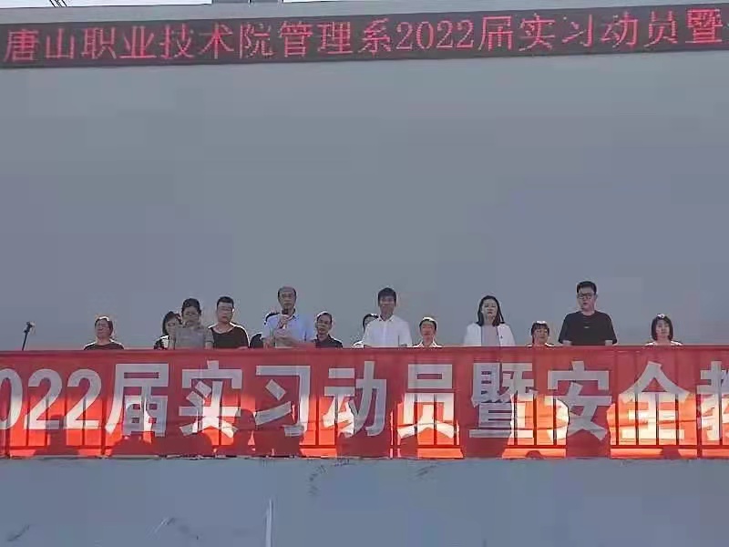 为确保学生实习工作的顺利开展,引导学生做好顶岗实习前的各项准备工作,加强学生对实习相关制度的了解,6月19日,唐职管理系在操场举行了2022届实习动员暨安全教育大会。管理系党总支书记王俊河、管理系主任陈亮、管理系党总支副书记傅翘楚、管理系副主任杨川川、管理系团总支书记石松侨。以及各教研室主任、2022届班主任老师、实习指导老师们、管理系即将实习的班级全部成员参加本次大会。大会由管理系主任陈亮主持。