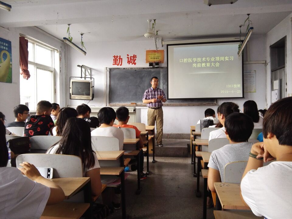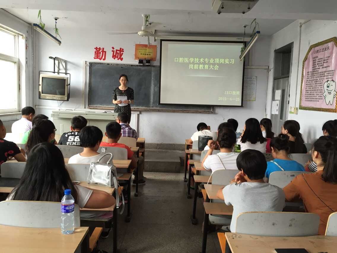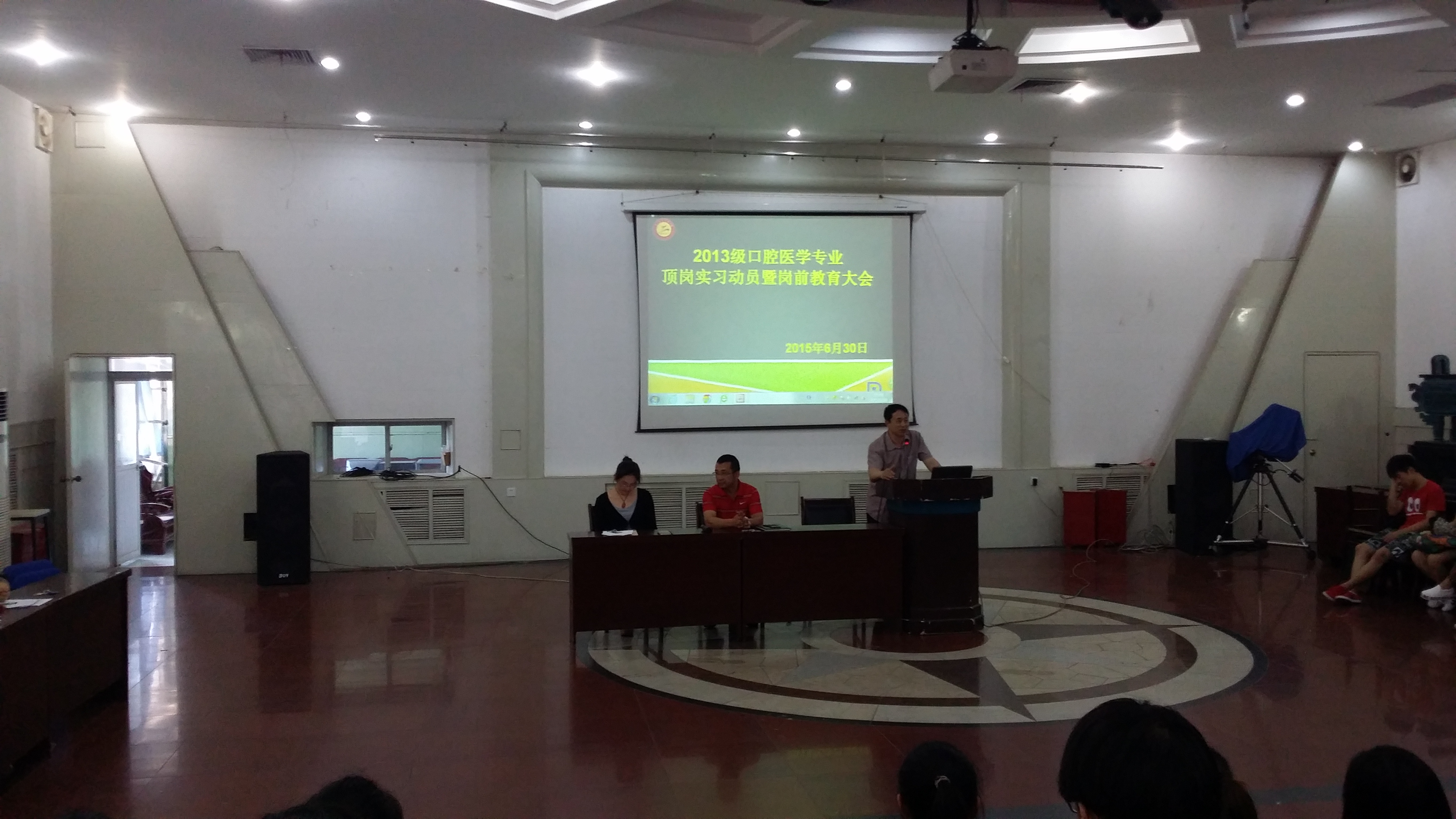 2015年6月30日下午,口腔系副主任蒋菁在万象城官网学术报告厅举办了13级口腔医学、口腔医学技术专业的岗前教育大会,口腔系全体教师和13级共195名同学参加了此次大会。