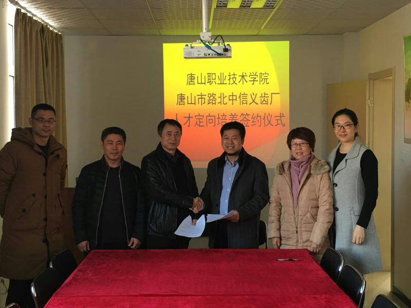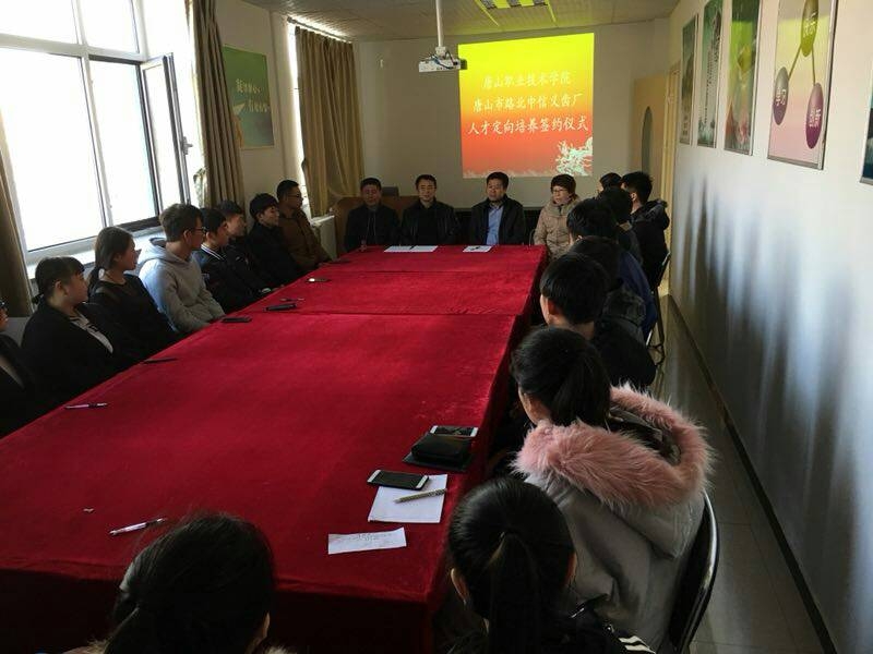 2017年11月28日下午,我系与唐山市路北中信义齿厂人才定向培养签约仪式在唐山尚德口腔病防治所三层会议室举行。会议参加人员有awc万象城体育教务处刘雅馨处长、口腔系党总支书记王春生、口腔系主任顾长明、口腔系教学主任蒋菁、唐山市路北中信义齿厂总经理刘永学和办公室主任刘士伟、全体订单班学生。