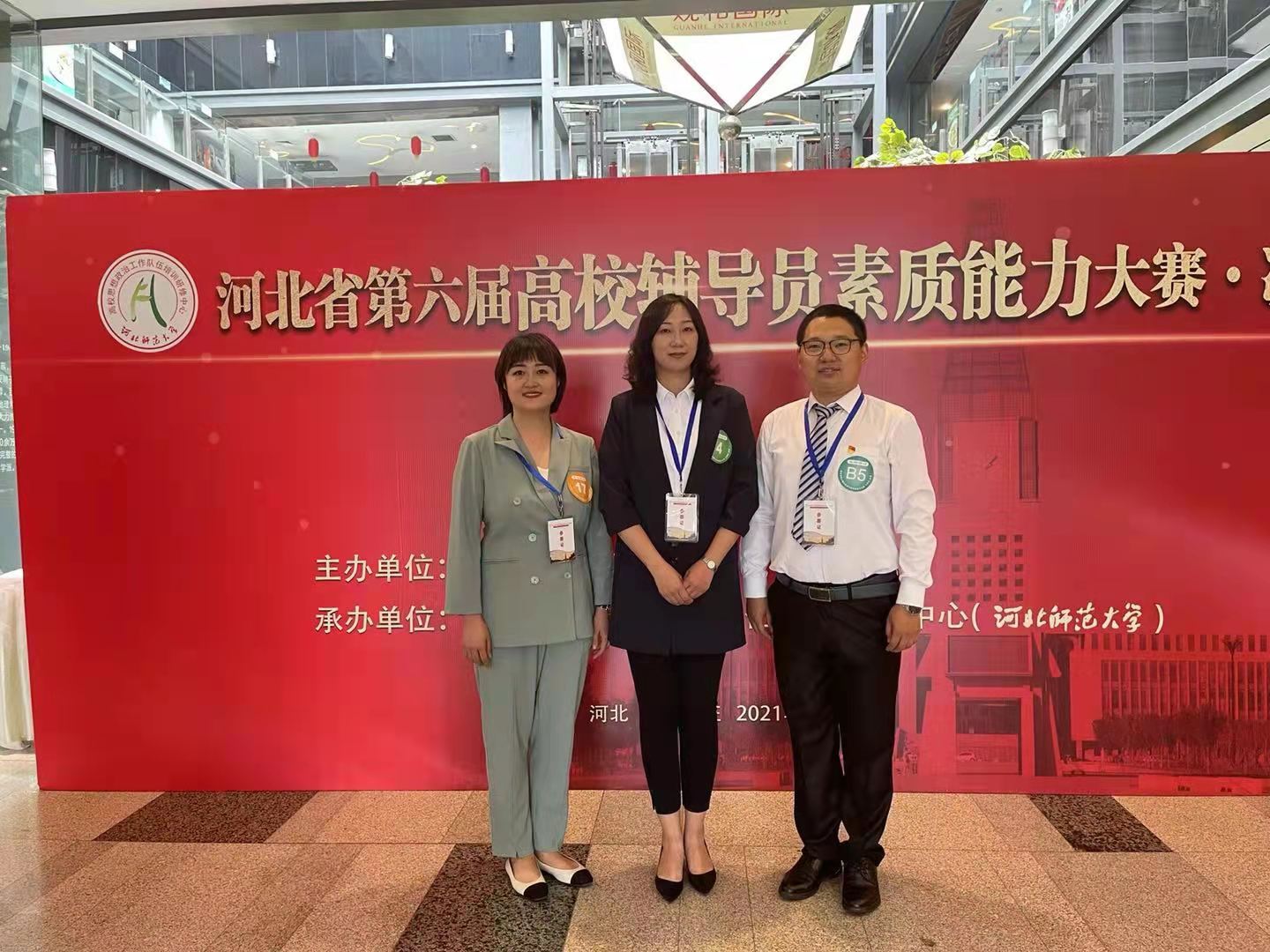 近日,在省会石家庄举办了河北省第六届辅导员素质能力大赛,万象城官网辅导员房美玲、李然和何珊三位老师组建的代表队脱颖而出,荣获专科组决赛团体一等奖,何珊老师荣获基础知识和班情熟知两项单项奖。