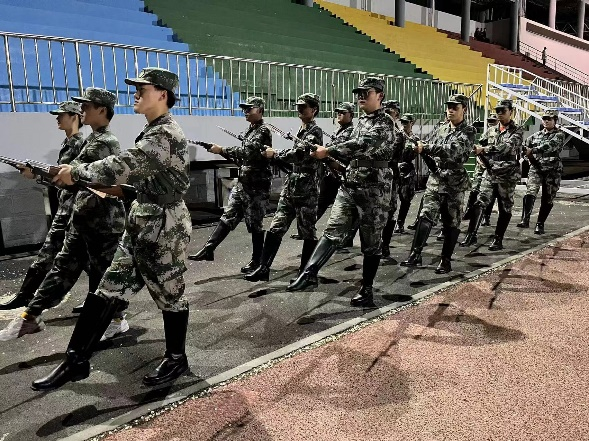 2.参与日常军事训练,利用课余时间开展军姿、队列、体能等基本训练。